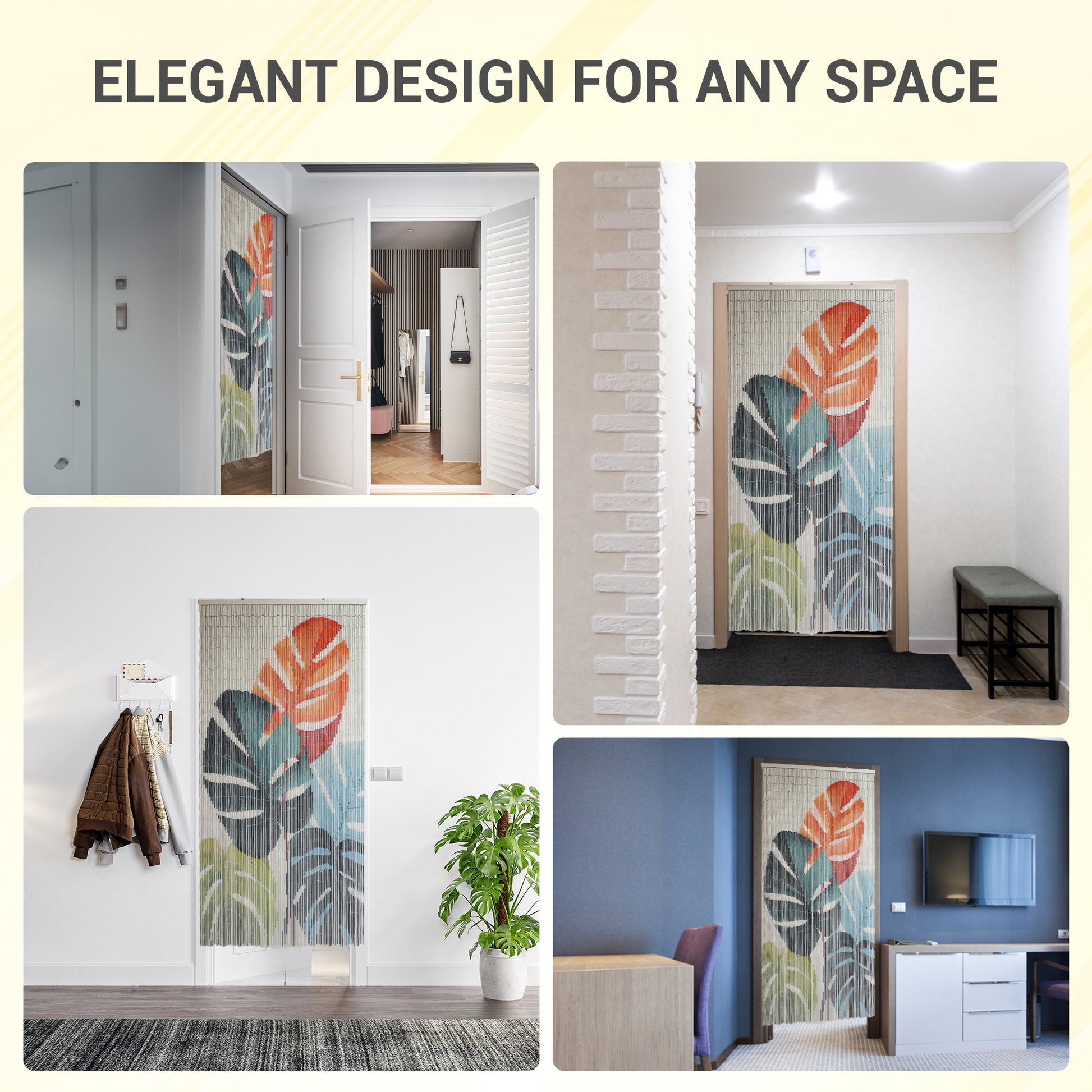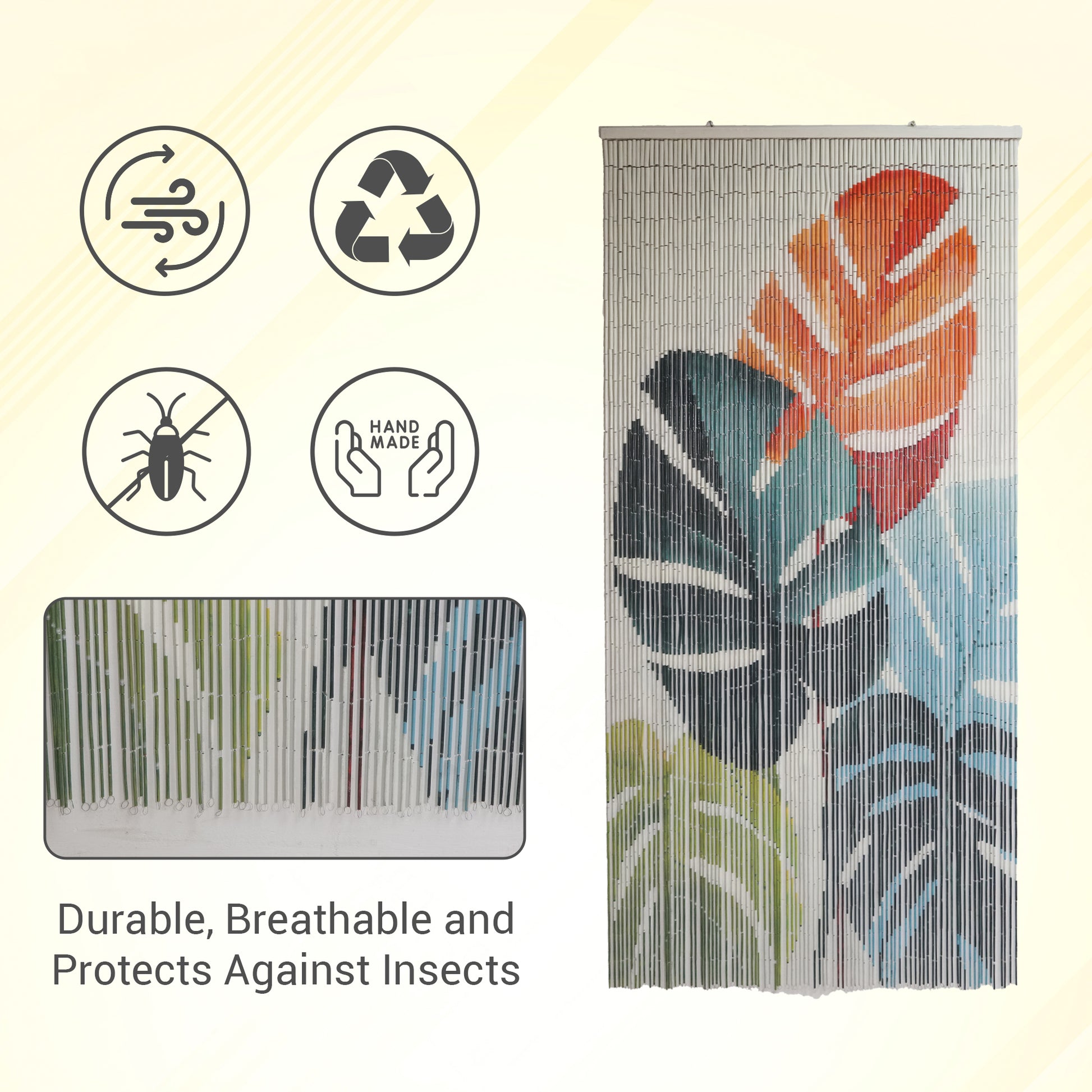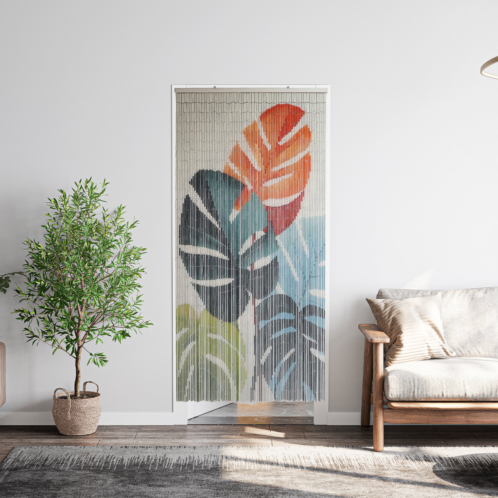 Bring home the vibrant essence of the tropics with the Vietbud Monstera Leaf Bamboo Beaded Curtain. Handmade by skilled Vietnamese artisans, this stunning piece doubles as wall art, a room divider, or a doorway curtain, adding natural beauty and cultural authenticity to your space.Crafted from 100% sustainably sourced bamboo, each strand is hand-painted with a bold Monstera leaf motif, evoking the lush greenery of a jungle retreat. Measuring 35.4 × 78.7 inches, it's perfectly sized to fit standard doors or create a dramatic vertical accent on any indoor wall.